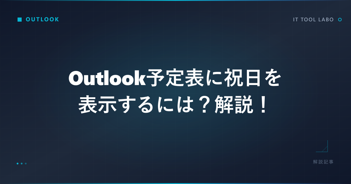 Outlookの予定表に祝日が表示されていないと、いつが休みなのか分からず会議の予定を入れてしまったり、納期管理に支障が出たりすることがあります。日本の祝日を予定表に表示しておけば、業務スケジュールの調整がぐっとスムーズになります。