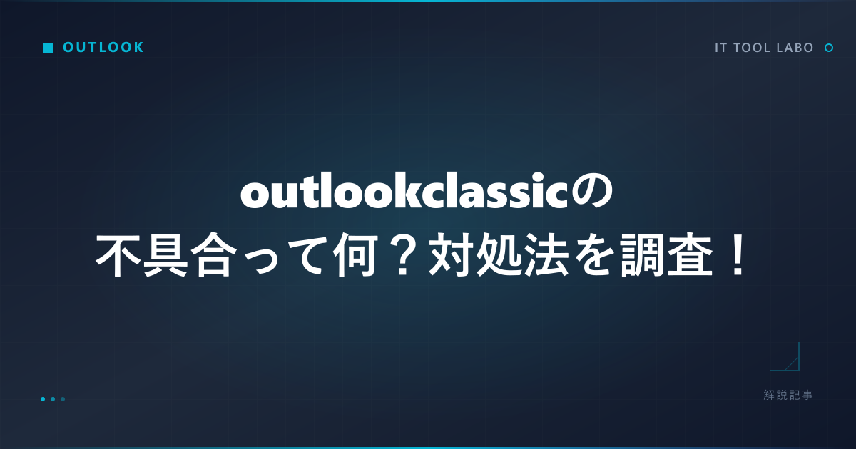 Outlook Classicが起動しない問題は、特に困る不具合のひとつでしょう。この問題にはいくつかの原因が考えられます。