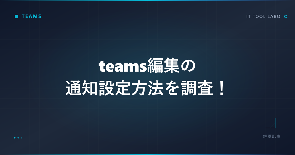 こんにちは。ITツールラボ、運営者のNです。Microsoft Teamsでメッセージを編集した際に通知が届くことで、作業の集中が途切れてしまう経験をお持ちの方も多いかもしれません。特に頻繁にメッセージの修正を行う環境では、編集の度に通知音が鳴ったり、画面上にポップアップが表示されたりすることで、業務効率が下がってしまうケースもあります。Teamsの編集通知をオフにしたい、設定を変更したいと考えている方も少なくないでしょう。