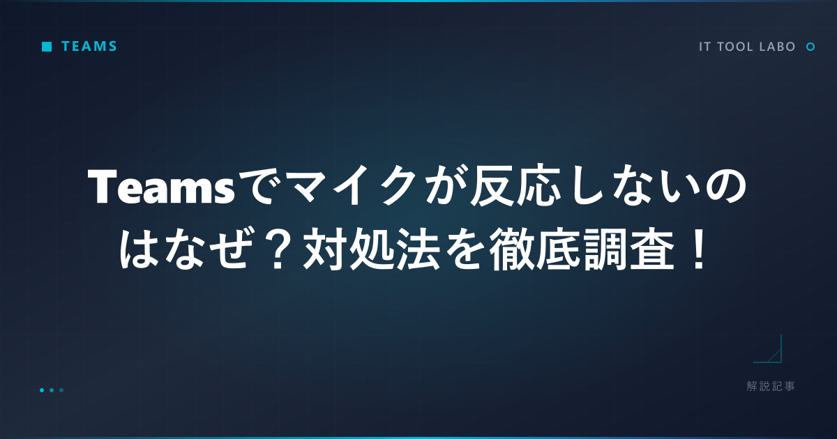 この記事では、Teamsでマイクが反応しないときに見直すべきポイントと、すぐに試せる具体的な対処手順を整理しました。会議の合間でも素早く確認できる構成にしています。