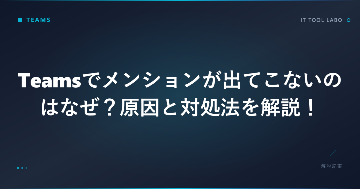 この記事ではTeamsメンションが出てこない主な原因と、その場で試せる対処法を順番に整理していきます。