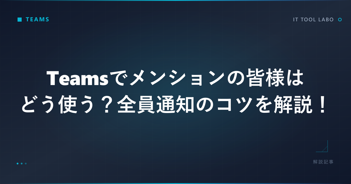 Teamsのメンション「皆様」は、グループチャットの全員に一斉通知を届ける強力な機能です。2023年のアップデート以降、日本語環境でも使いやすくなり、ビジネスの定番ツールとして定着してきました。