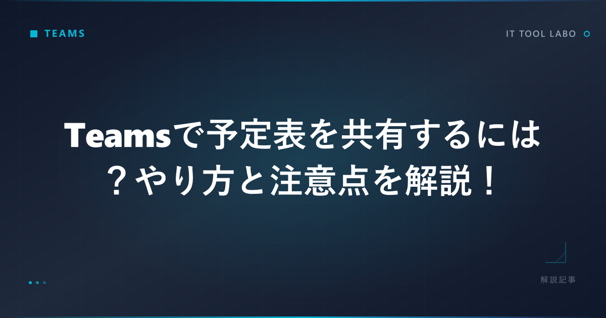 Teamsでの予定管理をさらに快適にしたい方は、Teams会議の参加者リストを確認する方法、Teams投稿の時間指定で効率化するコツ、Teamsアプリのキャッシュクリア手順もあわせてご覧ください。