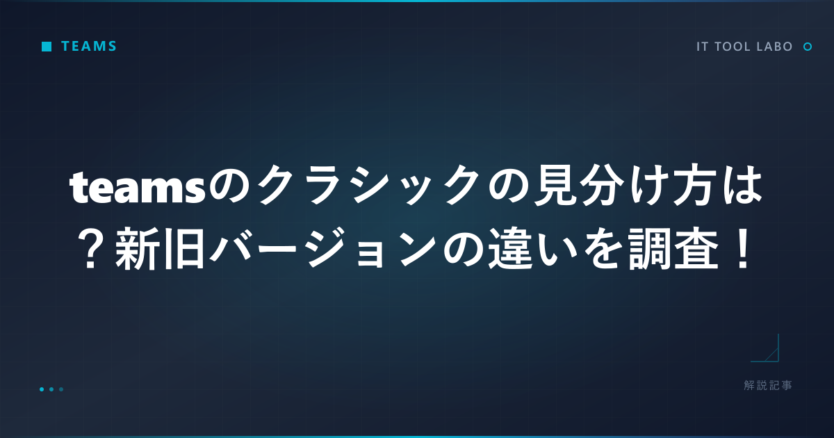 特にTeamsのクラシックの見分け方を知っておくことは、今後のサポート終了や機能移行に備える上で非常に重要です。画面上の表示やアイコンの違い、あるいは設定メニューの中に隠されたヒントから、現在の環境を正しく把握する必要があります。
