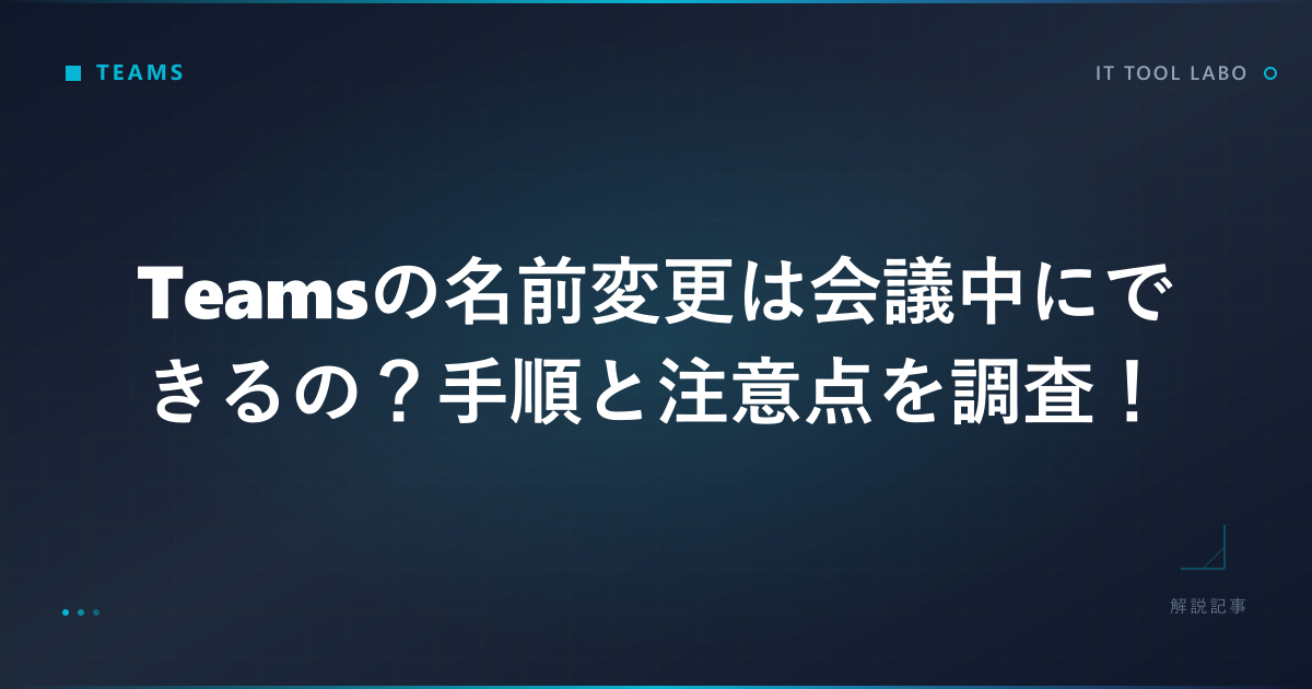 この記事では、Teamsの名前変更を会議中に行う手順や制限、応用のコツをまとめて整理していきます。