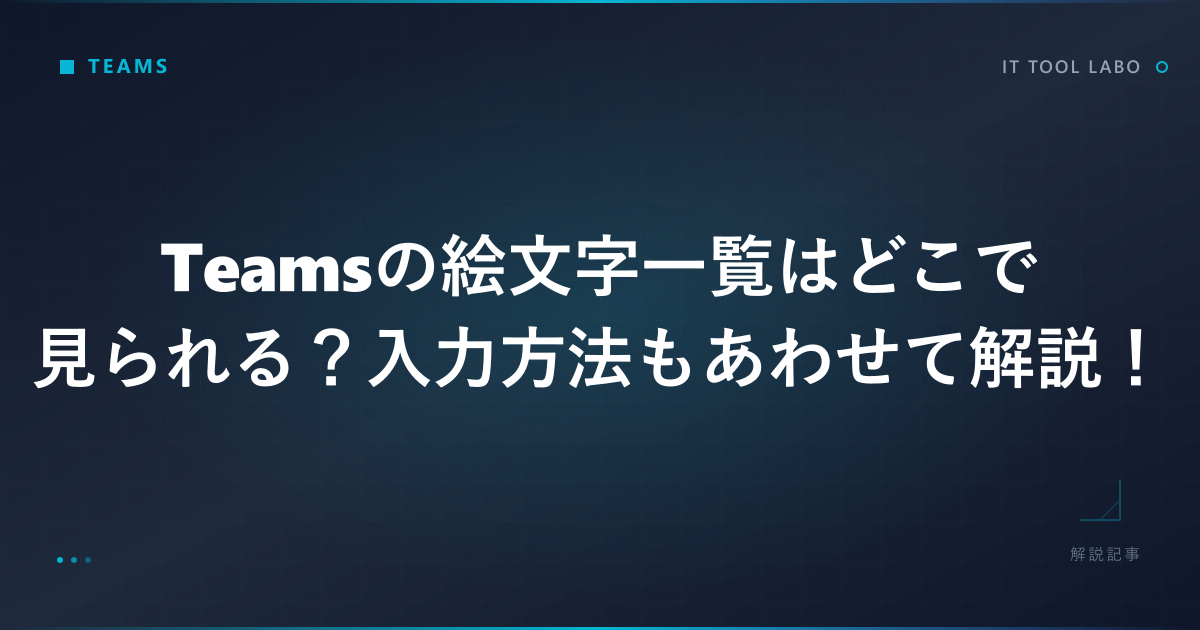 この記事では、Teamsの絵文字一覧の場所や入力方法、カスタム絵文字の追加手順、社内運用時の注意点まで整理して紹介していきます。