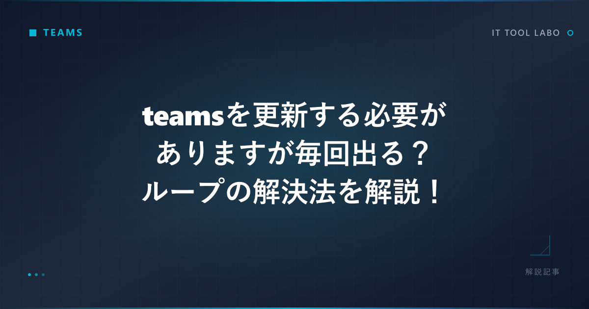 日々の業務で欠かせないコミュニケーションツールとなっているTeamsですが、利用中に「Teamsを更新する必要があります」というメッセージが表示されることがあるでしょう。一度だけの表示であれば問題ありませんが、何度更新しても同じメッセージが表示され、業務に支障をきたしてしまうケースも少なくありません。特に重要な会議の直前などにこの現象が発生すると、大きなストレスを感じてしまうことでしょう。Teamsを更新する必要がありますが毎回表示されるというループ現象は、多くのユーザーを悩ませている問題の一つと言えます。