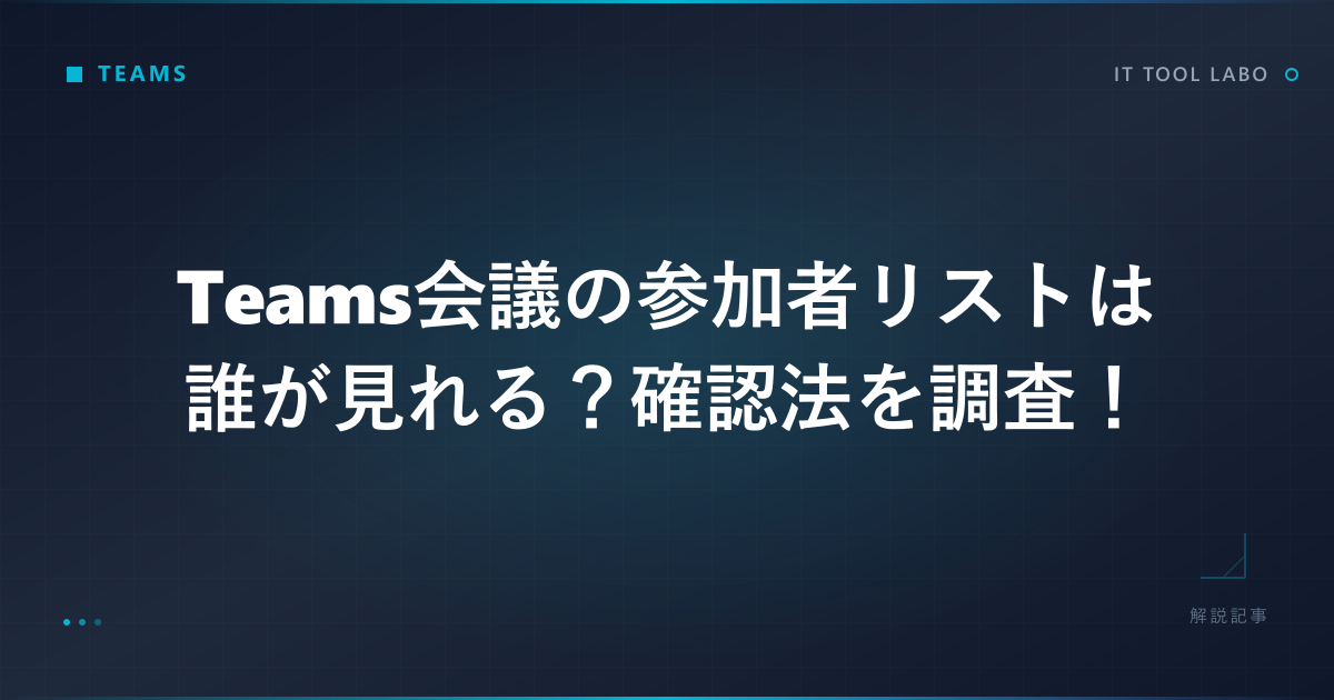 まずは、Teams会議で参加者リストを確認するための基本操作を押さえていきます。「会議中に見る方法」と「会議終了後に見る方法」では取得できる情報の粒度が違うため、用途に応じた使い分けが大切になってきます。主催者権限の扱いにも触れていくので、一緒に確認していきましょう。